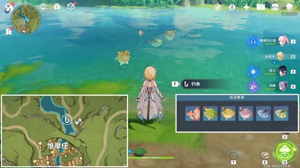 (2)当把一处点位的鱼掉完以后,调整时间至夜晚/白天,又会出现新的鱼