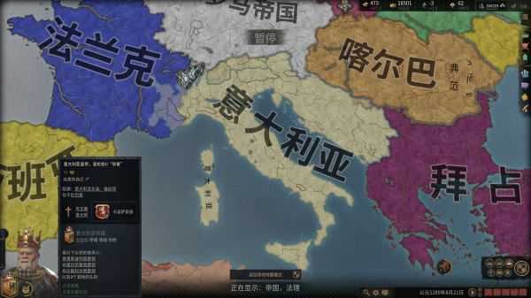 然后二代目开始开拓疆土,打下意大利亚帝国,然后跟着十字军转战伊比利亚半岛,伊比利亚半岛上王国众多,是解锁众王之族的好地方,全部打下来一共就有8个王国,加上自己就9个了,再凑一个就直接完成,而且这里的地叛乱几率极大,分出去也好。