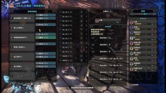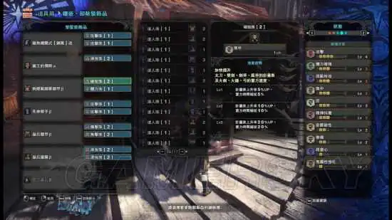 150血100会心1超会心配装,美中不足的是为了超会集中就只有2了,换大马士革衣服和暴君角龙手能集中3外加多个1槽但是113打法超会理论收益大一点。