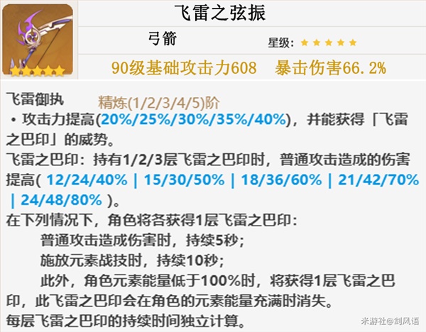 飞雷之弦振:五星首选,副属性的暴伤与宵宫自身突破的暴击率很是搭配,其次飞雷之弦振的被动非常适合宵宫的切换C打法的。