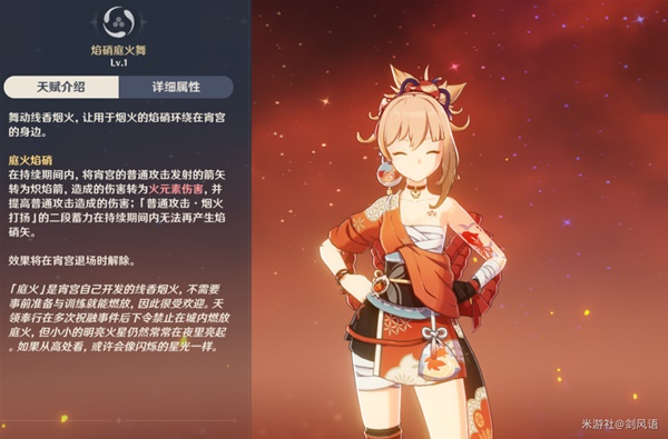 2、E技能提升伤害极为不俗,10级提升普攻161%伤害,突破自身天赋,普攻命中敌人提升火元素伤害加成,最高达到20%火元素伤害加成,唯一缺点有8秒真空期。