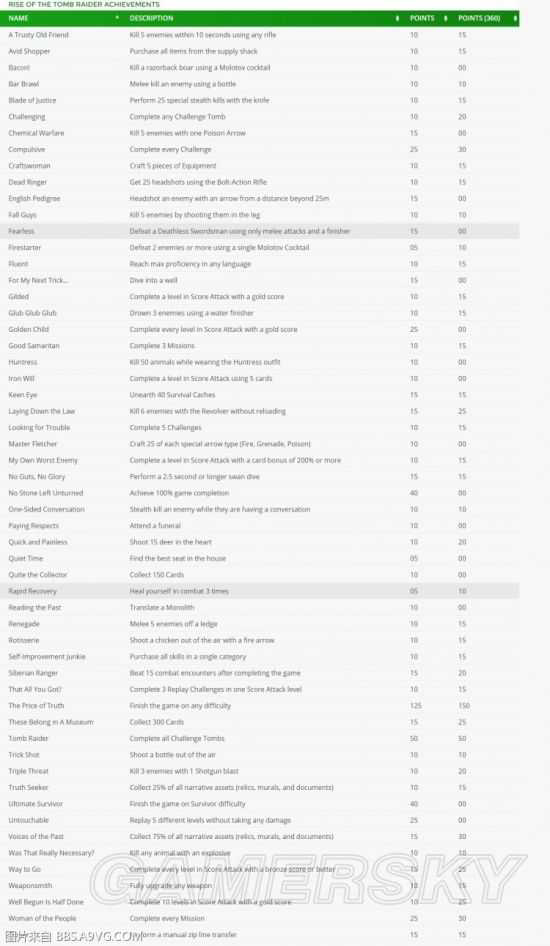 展开今天小编给大家带来的是一位玩家分享的《古墓丽影崛起》各难度基本要求及成就列表,快跟小编一起来了解了解吧!