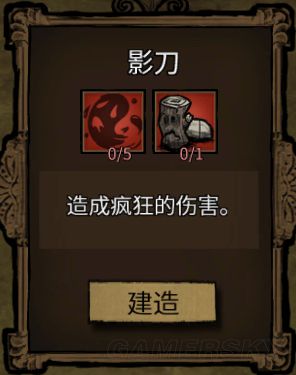 影刀:攻击力68,附加效果每分钟精神值降低18点,耐久100次。