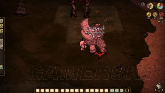 测试方法如下:首先,我将远古守护者的血量调整至10万,然后分别选取维斯、威尔逊、女武神、大力士用2把铥矿棒对远古守护者攻击300次,最后通过剩余血量计算铥矿棒的平均伤害,并与影刀对比。其中,大力士通过上帝模式始终保持满饱腹状态。