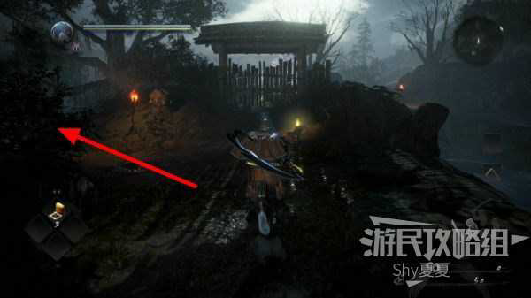 离开神社后,会看到一个木门,这个门目前是打不开的,只能从左侧的路前进。