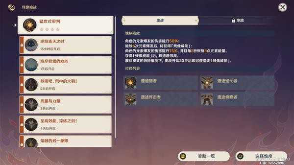 本次活动主要还是考验我们大家的练度以及队伍的循环表现,在本次新活动中,我们也是可以获得一种新增的BUFF“地脉残效”,此BUFF需要我们队伍中的角色通过实现多次元素爆发以后,才可以激活,主动效果为增加角色的元素爆发伤害75%,并且每2秒恢复3点元素能量。