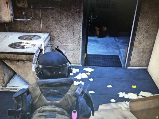 接下来银行总部,在一个有一堆军用电脑的房间有面白色大条的墙边互动拿到钥匙,滑下电梯开金库的门拿鬣狗箱子获得最后一个设计图。至此获得所有武器零件。