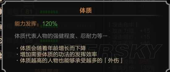 经历特质:锋从磨砺:无投入经历点数需求,消耗1点经历点数,大量增加人物膂力,初始膂力90+;