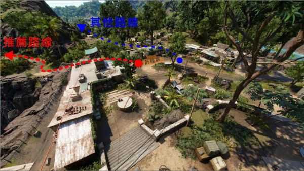 鳄鱼别墅的东北跟西北方外围高处有狙击手,沿着路线跑可以不被发现然后入侵。