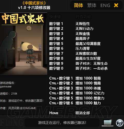 1.“无限悟性”、“无限行动力”、“无限金钱”、“最高面子”、“最高父母满意度”、“压力清零”、“增加1000 xxx”等功能在数据更新时生效。