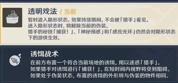 将获得捕获技能(元素战技),可以解除游侠伪装并捕获