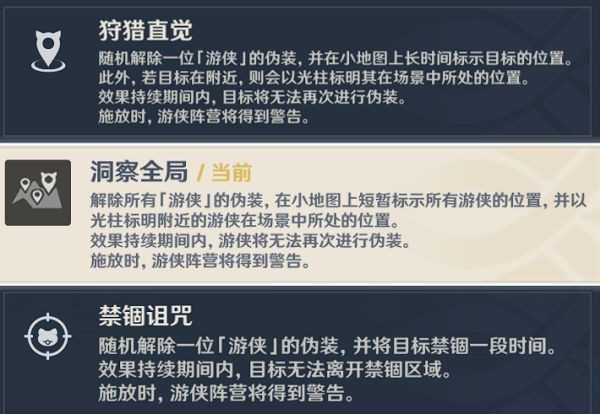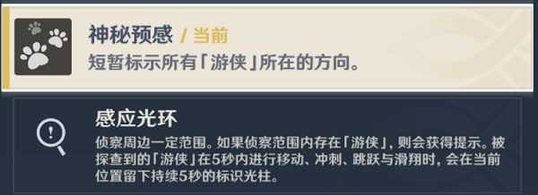 感应光环(探知附近存在游侠则会提示)和神秘感应(短暂标志所有游侠方位)