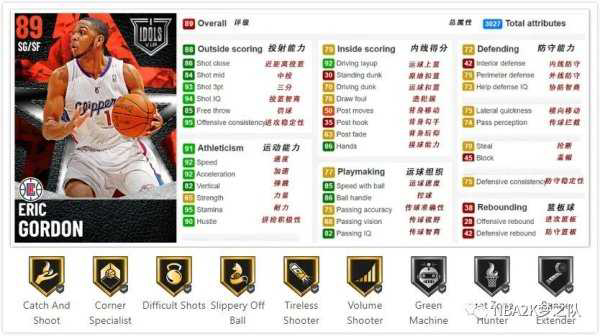 快船时期的“圆脸登”来了,这张红卡有着93的三分,而且双速也都达到了92,1米93的身高虽然打2-3号位都有点偏矮,但他依然可以扣篮(突扣70),14枚金章中包含了接球投篮手、第一步大师、节奏终结者等实用徽章,还有远程炮台和热区猎手银章,虽然防守一般,但仍旧是一张性价比很高的妖卡。