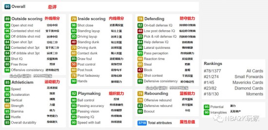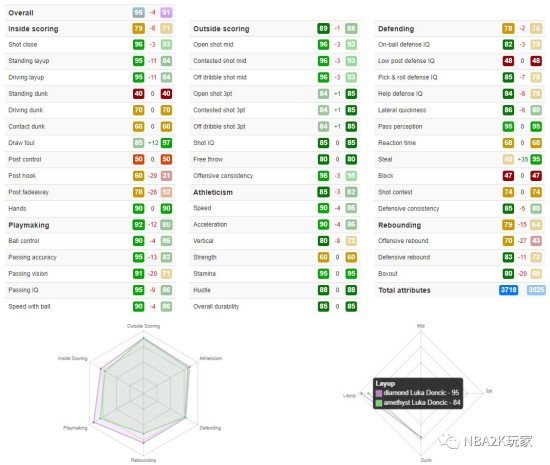 这张东契奇钻卡相比之前紫水晶卡的提升还是比较明显的,大部分属性都包了一小圈,可惜背控没有拔一点。