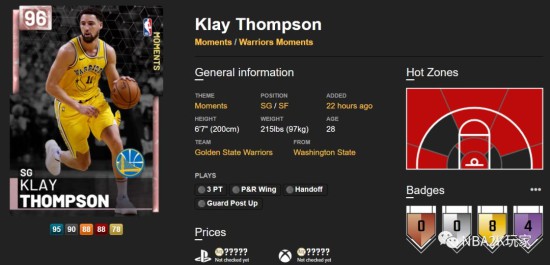 《NBA2K19》中,克莱汤普森凭借着自己优异的热区以及舒服的出手动作一直牢牢占据着首发得分后卫的位置,那么克莱最新的粉钻时刻卡属性如何呢?下面就为大家带来“ASPIRIN”分享的《NBA2K19》粉钻克莱汤普森数据解析,一起来了解一下吧。
