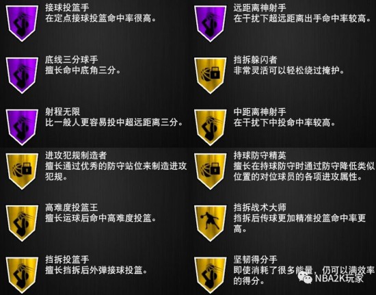 8+4的徽章组成,徽章相比钻克莱而言完全没有变化,这就有点让人不舒服了,如果小编没记错的话,应该是目前粉钻球员卡中徽章总数最少的球员。好在名人堂徽章的质量还是可以的,接球投篮、远距离、底线三分、射程无限,这四枚射手在三分线外最重要的徽章都紫了。