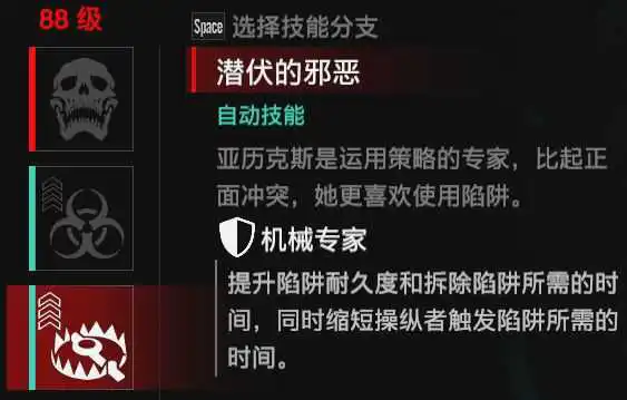 光纤电缆+机械专家:可以用于配合【红皇后模块】瞬间触发可手动触发的陷阱,可配合丧尸组合攻击。也可以用来瞬间关门。