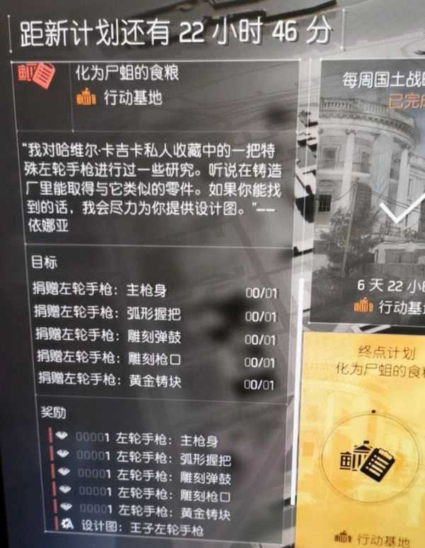 接下来应该是分别提交两套装备对应的材料以解锁两套装备都图纸和王子左轮的计划。