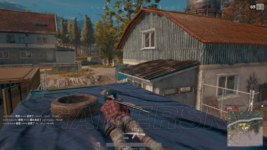 4.当搜刮的差不多了,想找个地方观察情况,或者做一波埋伏,更或者是被敌人包围了下图房子还有卡视野与周旋等sao操作。