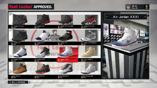 然后关于商店,东西还算全吧,有全系列的科比战靴和各种配色,aj里也有从1代到31代以及球员战靴,不得不吐槽aj31是不太好看,当然商店里还有自定义球场、护具、纹身等各种东西卖