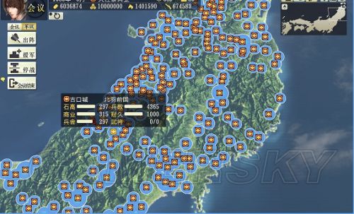 于是就这么,打啊拆啊,终于统一全国了。除了本城,其它房子全没了。最后就留下津岛一个本城。我想,算了,哥是爱好和平的,让你自生自灭吧。