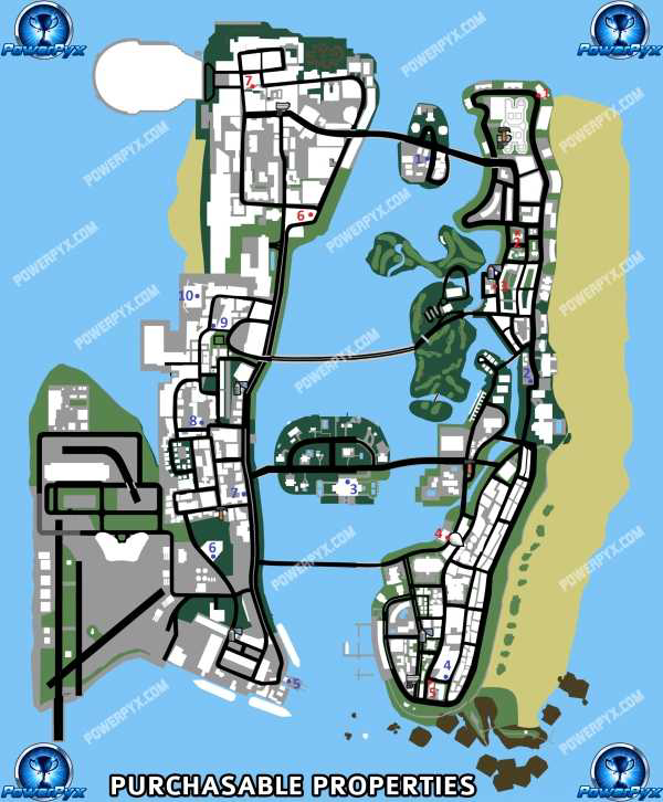 本作一共有17座可购买的房产,分为两类:可以存档并保存车辆的“不动产”以及能够存档并执行相关任务的“资产”,不动产有7座,资产有10座(完成任务可免费获得2个)。拥有10座房产即可解锁奖杯【罪恶城大亨】。拥有全部17座房产即可推进100%完成度。