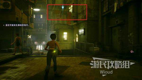 跳到绿色酒店灯牌再往下跳到房顶可以拿一个记忆碎片。