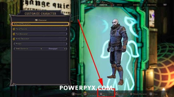 在换衣站按【□/×键】洗点(PC版直接看此面下方按键提示选择重置技能即可)。