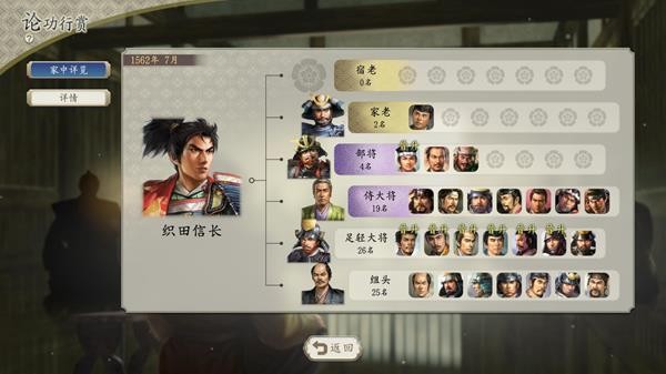 暂且不去谈论AI设计没有让这套“放权”玩法呈现出应有乐趣的问题,更大的问题可能在于“无人可用”——比如就算是拿织田信长这样初始武将就超多、也有很多剧情杀&剧情结盟&剧情事件帮助获取人材的“天选之人”开局,在连续讨伐2-3个势力之后,也会开始陷入“知行”供不应求的状态:其中很大一部分原因在于至少要达到“足轻大将”才能分封为领主,而后续加入的多半是“组头”,虽然可以用类似于母衣众这样的政策来增加“晋升”速度,但显然是供不应求的,因为“组头”升为“足轻大将”需要300点功勋,而“足轻大将”升为“侍大将”需要1550点功勋——这个阶段获得功勋的机会倒是多了很多,因为首先有合战拿功勋的机会,其次城主的提案(也就是各种限时任务)达成了的话连带着下属的知行都会获得大幅度功勋提升。