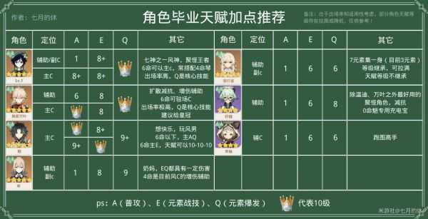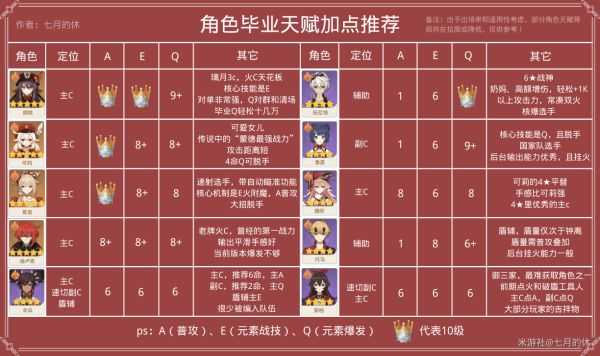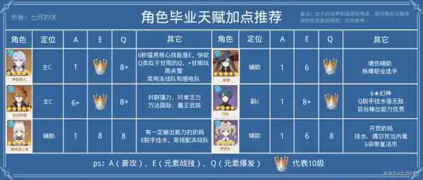 性价比:以目前主流、出场率、实用性及适用性强的角色及天赋为参考标准!(ps:仅代表笔者个人观点和游戏理解!请大家根据自己的喜好与队伍实际情况进行分配!)