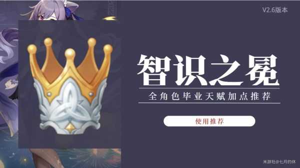 《原神》中的智识之冕也被成为皇冠,可以用来提升角色的天赋等级。下面请看由“七月的休”带来的《原神》智识之冕使用与全角色天赋加点分配建议,希望对大家有用。