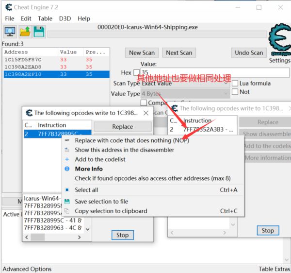 3.对所有搜索到的数据都右键然后这样找地址
