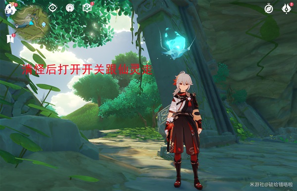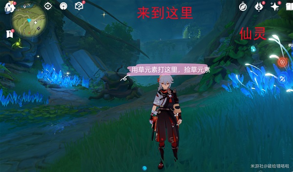 跟着仙灵走的时候记得把体力回满!路程比较长,下个河拐角有石柱那里可以回体力,再往里游有个体力花,记得触摸回体力!不听就会被淹死