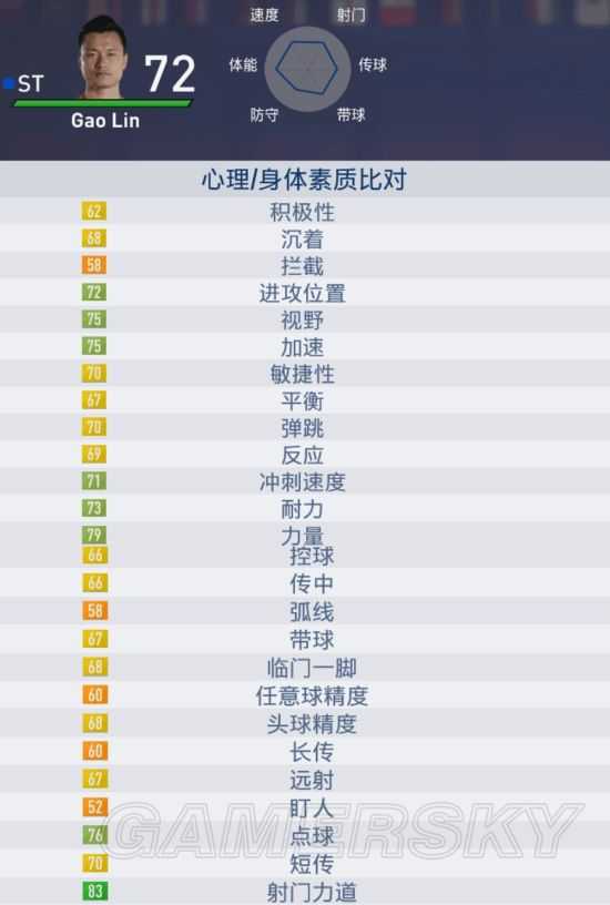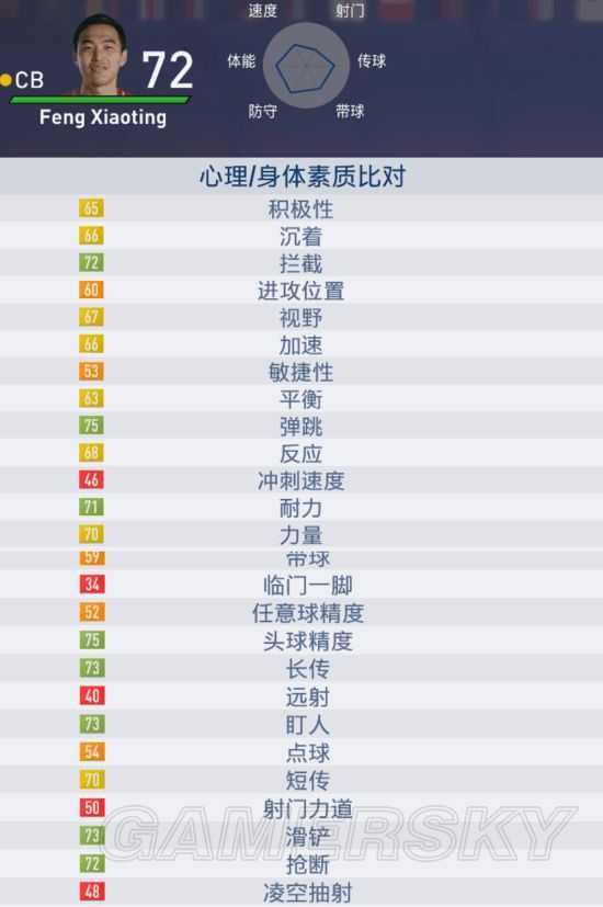 球员方面,中国队能力最高的三名球员分别为冯潇霆,武磊和郜林,他们在FIFA 18中的综合能力均达到了72。作为一名后卫,冯潇霆的头球能力和防守拦截能力还是相对不错的,都达到了70以上。