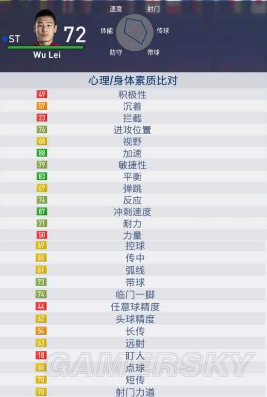 而武磊的冲刺速度以及平衡分别达到了87和83,仅这两项数据来看,武球王绝对达到了欧洲顶级球员的水准。
