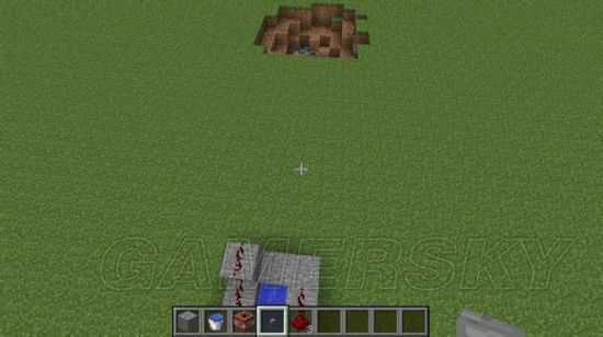 原理是右边红石点燃5个TNT,再引爆左边的一个炮弹,,就可以将他谈飞出去了,坑里一定要倒水啊