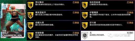 这张张伯伦进攻端投射方面稍有中投,内线得分能力非常优秀,除了75的隔扣之外,所有小项都给到了95以上。