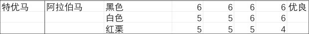 以上所有数据分析下来,不包含玩家对外观的喜好,黑色阿拉伯绝对是总数值最高,最平均,操控性最佳的马匹。卖42金条确实有他的道理,那些无脑黑阿拉伯的可以去好好尝试一下满默契的阿拉伯,不过个头确实小,不喜欢外观的当我没说。