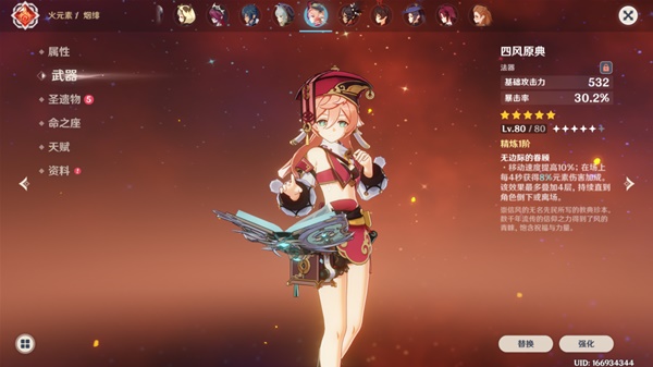 烟绯作为四星火系主c,是新手玩家首选角色之一,虽然她下限比较低,但四星的面板就决定了她作为主c的高度,前期用的还是比较舒服,当你抽到了五星主c的时候也可以把她换下去。