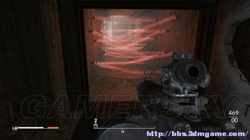 这个通道是进入最后那个“藏宝点”的两条路之一,解除所有镭射陷阱后,在走廊的尽头按左边的按钮开门(千万不要对着镭射机枪按e,后果自负),确保你的小伙伴进门了以后,再按一下按钮,在门没关上的瞬间,进入门里,然后你回到起点,镭射陷阱全部恢复,于是你有了无数的水晶和光学纤维
