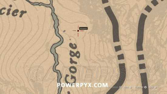 在地图西北部的雪中间,一条河的东边,在蜘蛛峡谷。