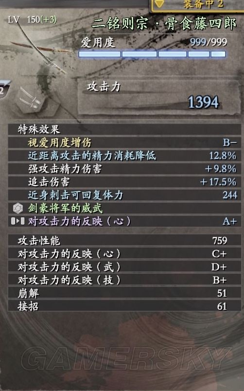 首先双刀自带的属性补正是:心C+,武D+,技B+。