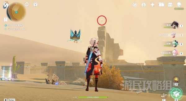 第二天的未来星位于沙漠地区,需要打沙漠新遗迹怪,建议提前调整好阵容。目标位置位于地上,可以传送到铄石之丘传送锚点然后跑过去。