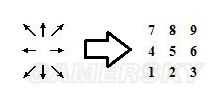 首先是方向键,所有的8个方向,我们用小键盘上的数字来表示,如下图
