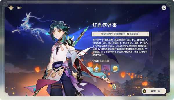 旅行者们完成「灯自何处来」剧情之后可以开启「海灯节轶事」。