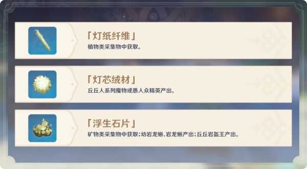 完成「海灯节轶事」中的居民请求和「机关棋谭」挑战,都需要用到「霄灯」。那么「霄灯」到底该怎么制作呢?别急,本丘来告诉你~
