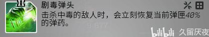 如担心子弹不够用或没有永动mod可选择剧毒弹头作为替代。