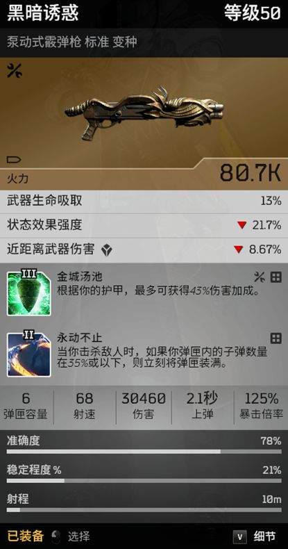 请尽量选择带有生命吸取、护甲穿透状态效果的武器。
