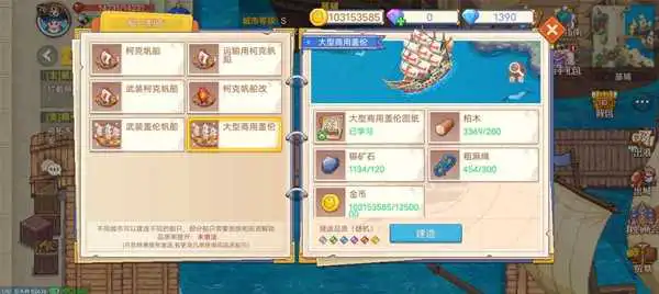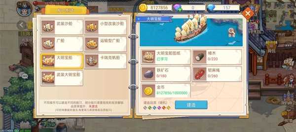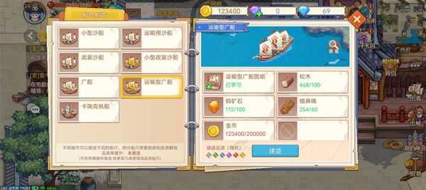 跑商:(主要看载重和船速,全改成货仓,打副本用钻石船)