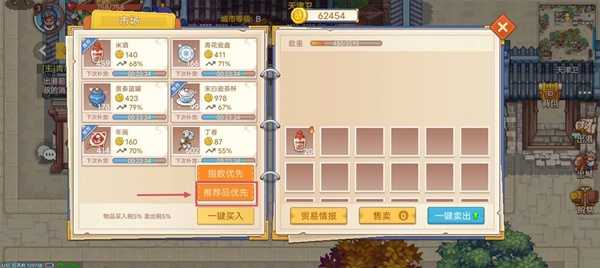 不知道怎么买卖可以一键买入推荐品优先,一般来说推荐品卖到其他城市都是赚的。